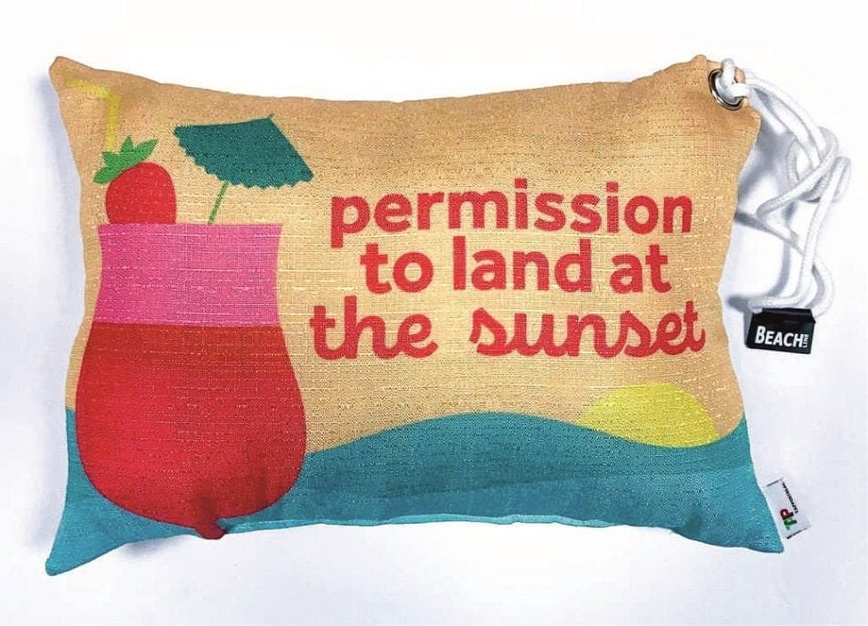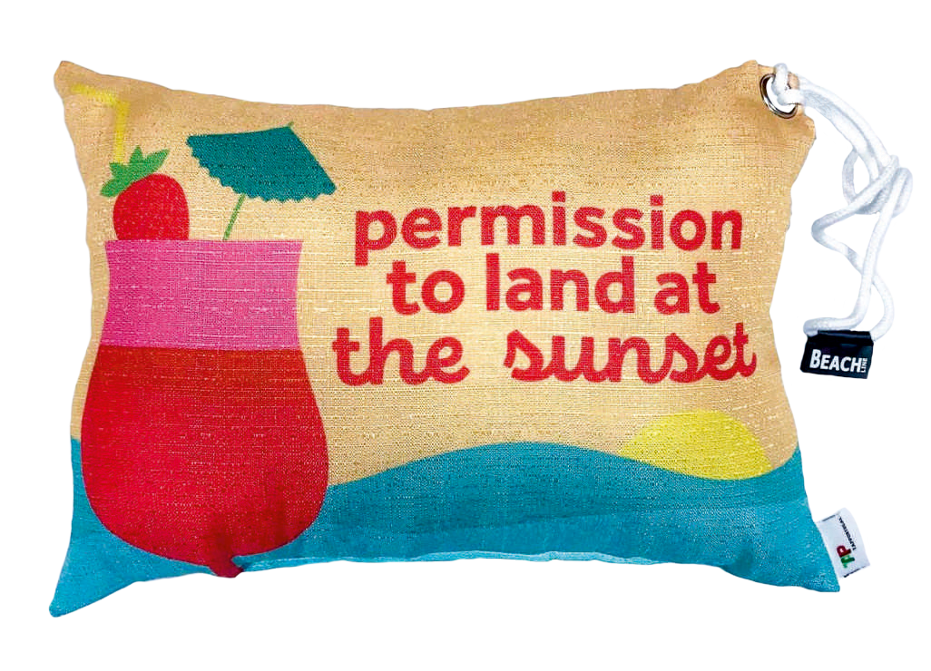 Almofada de praia TAP, impressão digital, composta de 100% poliéster.
